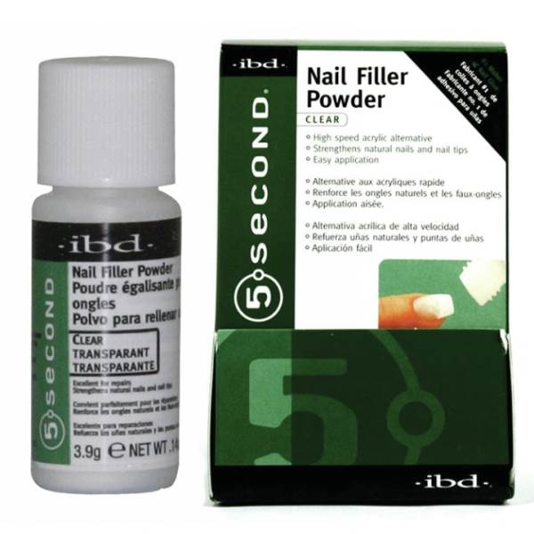 5 Second Nail Filler, used with glue, is a high-speed alternative to traditional liquid and powder acrylic systems. This easy-to-use sprinkle method requires no activator and has no harsh odors.