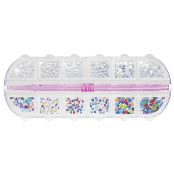 Rhinestone Accents Box A 450pc includes a free PICKerr UPerr. Includes Hearts, sm. Rounds, med. Rounds, pet. Marquise, pet. Squares and Tear Drops.