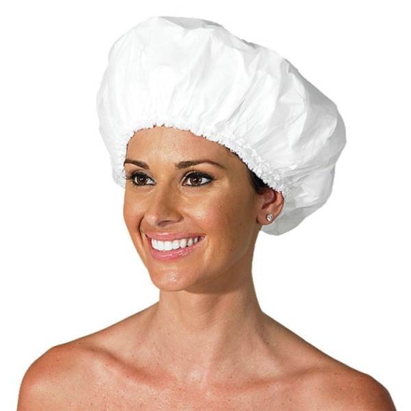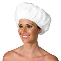 Vinyl-lined shower cap with outer chiffon