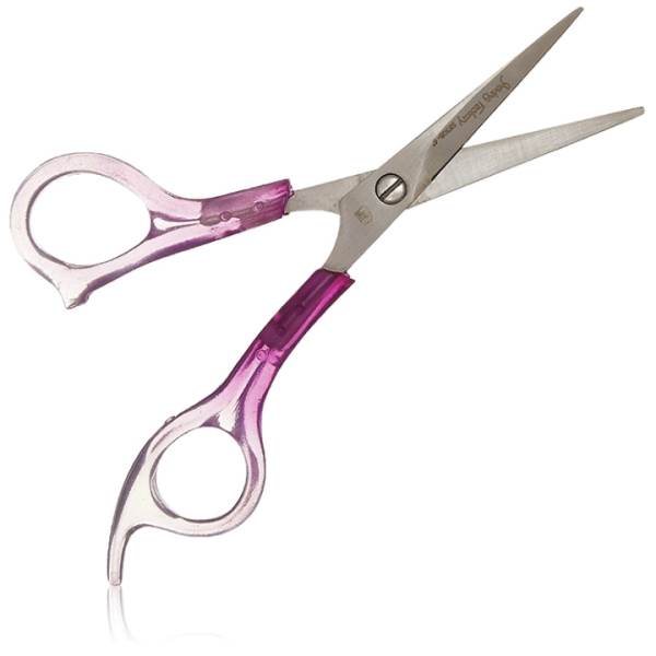 Barber scissors with plastic handle with finger rest