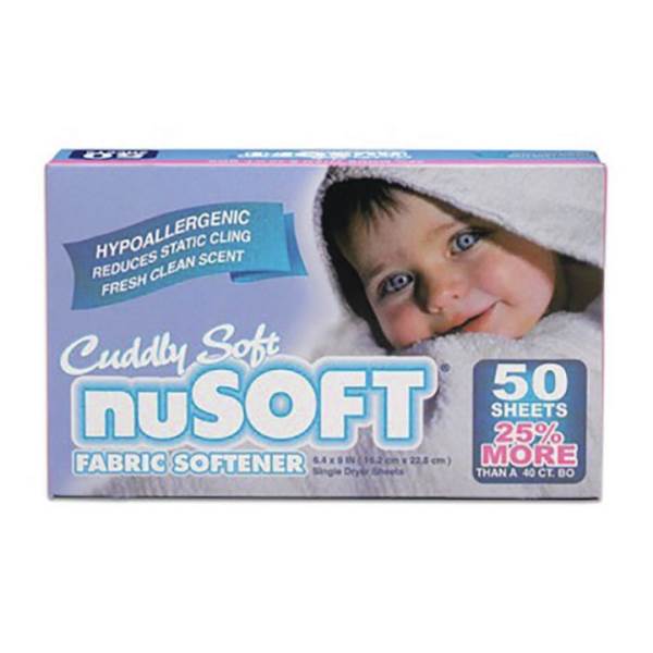 Get the same fresh springtime scent of liquid nuSoft in a dryer sheet. This hypoallergenic formula softens naturally with coconut and contains no dyes or colors. Make your laundry cuddly soft & clothesline fresh! Fifty sheets per box.